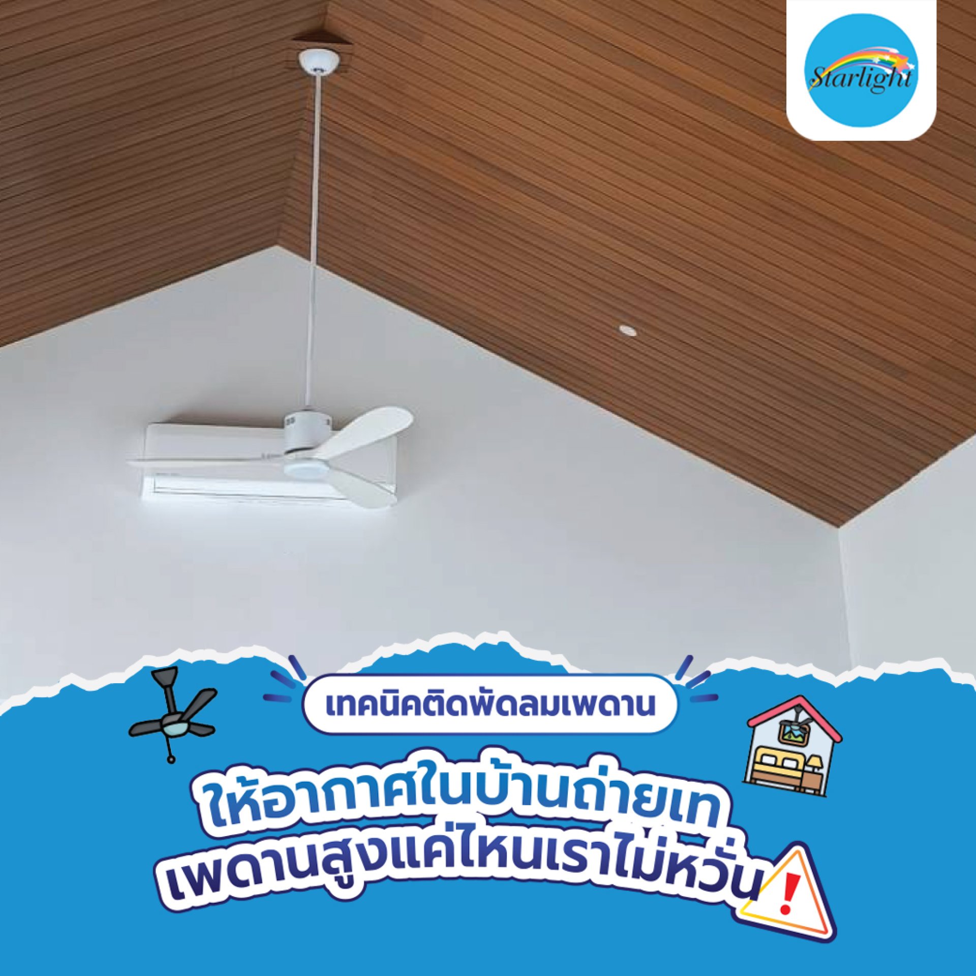 บ้านของคุณอึดอัดเพราะอากาศไม่ถ่ายเทหรือเปล่า? พัดลมเพดาน อาจเป็นคำตอบที่คุณกำลังมองหา! แต่ปัญหา คือ เพดานบ้านสูงหรือต่ำแค่ไหน พัดลมเพดานรุ่นไหนเหมาะสมกับบ้านคุณ ต้องติดตั้งอย่างไรให้ได้ประสิทธิภาพสูงสุด วันนี้ STARLIGHT จะมาเจาะลึกถึงเทคนิคการติดตั้ง และความยาวท่อของพัดลมเพดานที่เหมาะสม เพื่อให้บ้านของคุณมีอากาศถ่ายเท สบายเย็นสบายตลอดทั้งปี